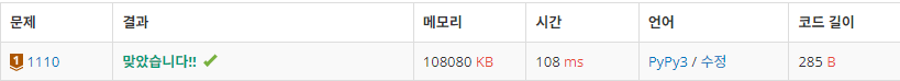 어렵지 않아 보이는 문제였는데 재귀함수로 하려다가 포기하고 함수짜는 것을 포기했다. 그 이후에 많은 시도를 해보았는데 계속 출력이 안되다가 마지막에 입력코드가 맞았다. 지금은 왜인지 알 수 없으니 다음에 보고 왜 출력이 안나왔는지 생각해봐야겠다.